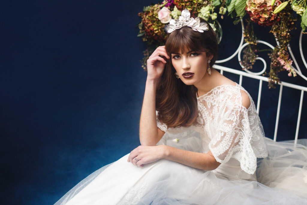 Credits: Photographer- Angie Candell Hair- La Pomponnee Beauty Artisans Makeup- Brazil Raine Gown- Claire Pettibone Model- Bella Davisson Florist- Bella Fiore Designs Furniture- Vintage Alley Accessories- Kata Banko Couture
